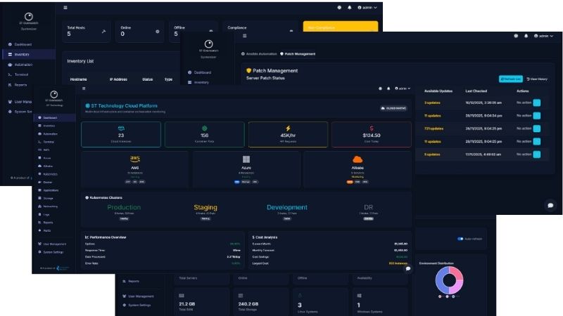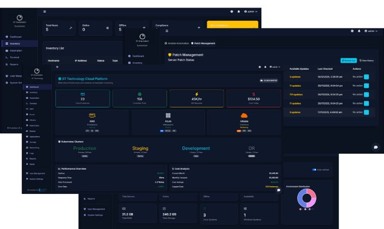 ST Overwatch is a highly customisable IT monitoring and automation platform designed to provide real-time visibility into your entire infrastructure. Unlike rigid, traditional monitoring tools, it adapts to your specific environment, using lightweight agents to collect deep telemetry from servers, storage systems, cloud infrastructure and network devices.
